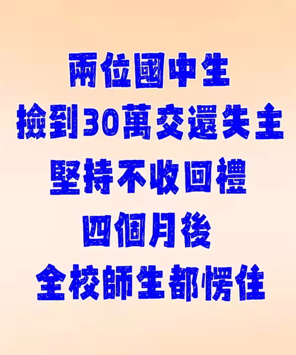 國中生「撿到30萬交還失主」堅持不收回禮!4個月後全校師生都愣住….