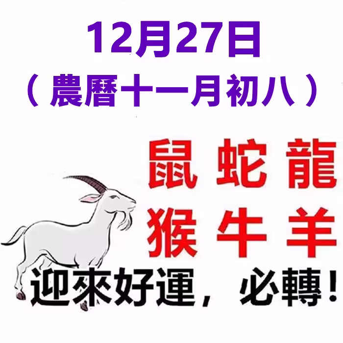 12月27日(農曆十一月初八)生肖運勢_鼠、蛇、龍大吉