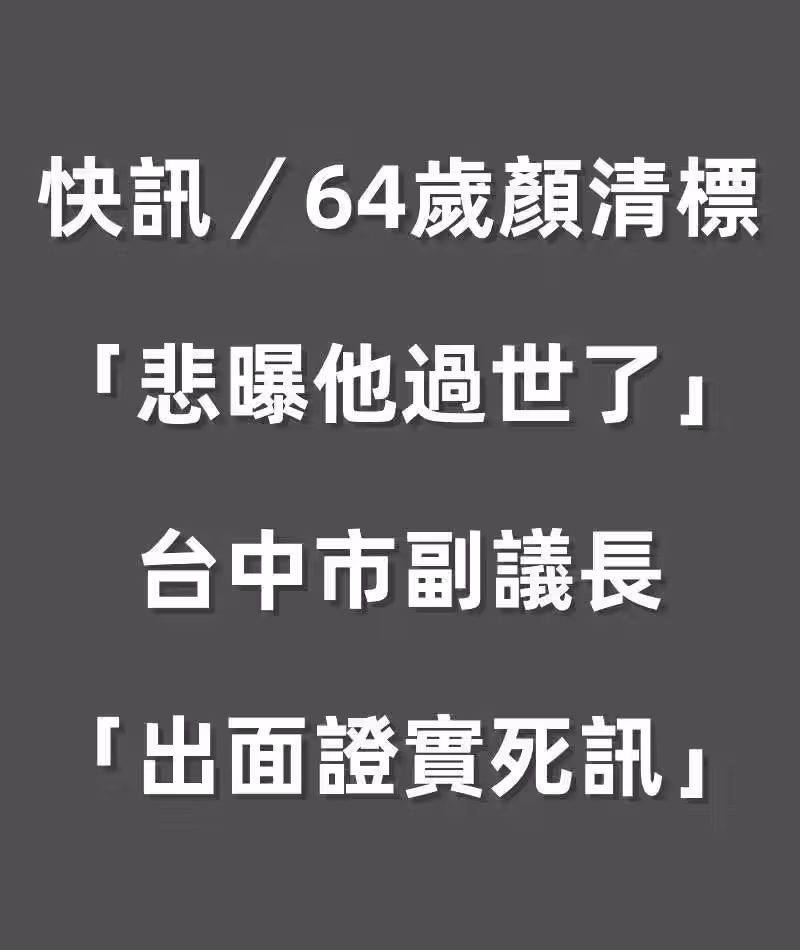 快訊/64歲顏清標「悲曝他過世了」!台中市副議長「出面證實死訊」