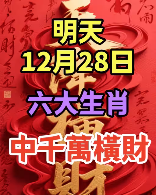 明天12月28日農曆十一月初九,干支乙巳年戊子月辛未日,路旁土當令,年火生助日土,「五富」「天財」吉神臨門,財氣匯聚成潮。 六大生肖今日得時運垂憐,橫財運勢達到頂峰,有望斬獲千萬橫財,憑藉貴人相助與自身福澤,逆轉財運格局,迎來歲末富貴爆發。