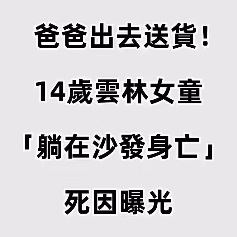 爸爸出去送貨/14歲雲林女童「躺在沙發身亡」 男大生被託夢 員警調查死因都傻住