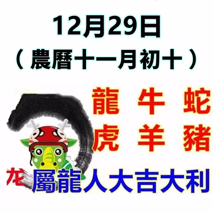 12月29日(農曆十一月初十)生肖運勢_龍、牛、蛇大吉
