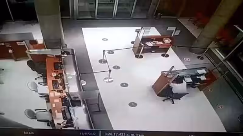 不過令人不寒而慄的是,保全一直都在獨自和空氣對話,大廳中從始至終也只有他一人...