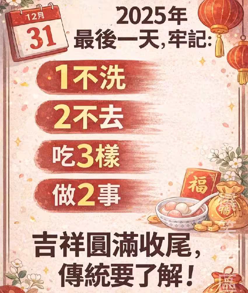 2025年最後一天!!! 牢記:1不洗,2不去,吃3樣,做2事,吉祥圓滿收尾,傳統要了解!