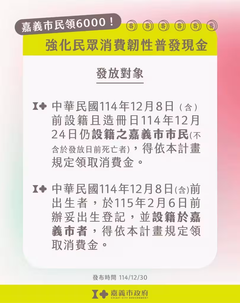 快訊/市政府又加碼普發現金 6000元!領取方式一次看