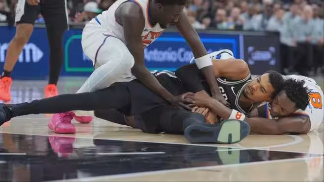 昨天馬刺vs尼克斯,第四節剛打1分多鐘,文班亞馬搶籃板落地時左膝遭遇過度伸展,直接退出比賽。文班賽後表示自己問題不大:「我本來想重新登場的,但球隊阻止了我。為球隊傾盡所有是我的責任,我們都需要那種額外的拼勁!」