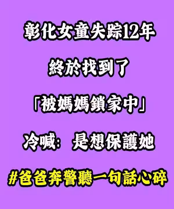 彰化女童失蹤12年!終於找到「被媽媽鎖家中」冷喊:是想保護她 # 爸爸奔警局聽一句話心碎!