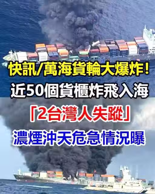 快訊/萬海貨輪大爆炸!近50個貨櫃炸飛入海「2台灣人失蹤」 濃煙沖天危急情況曝!
