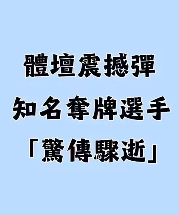 體壇震撼彈!知名奪牌選手「驚傳驟逝」.