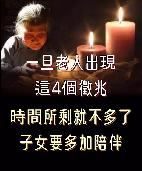生老病死雖然無可逃避,但都是有規律的,當家裡老人出現這4個徵兆,子女就要多留意,多陪伴了!