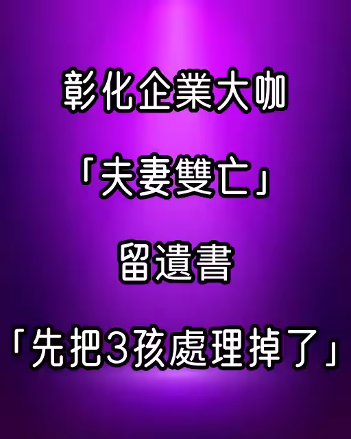 彰化企業大咖「夫妻雙亡」...留遺書「先把3孩處理掉了...」