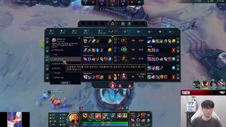 Faker 直接檢舉這名沒在玩的銳空(圖源:T1 Faker)