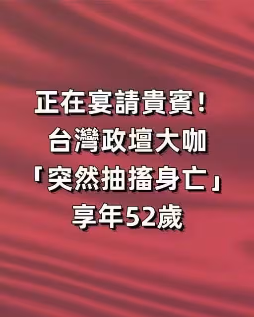 正在宴請貴賓 台灣政壇大咖 「突然抽搐身亡」享年52歲!