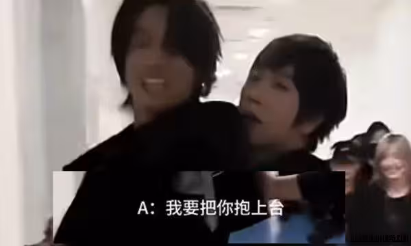 言承旭身穿露胸肌戰袍,展現帥氣魅力,而阿信則憑藉180公分壯碩身形輕鬆扛起同高的言承旭,畫面宛如偶像劇場景。