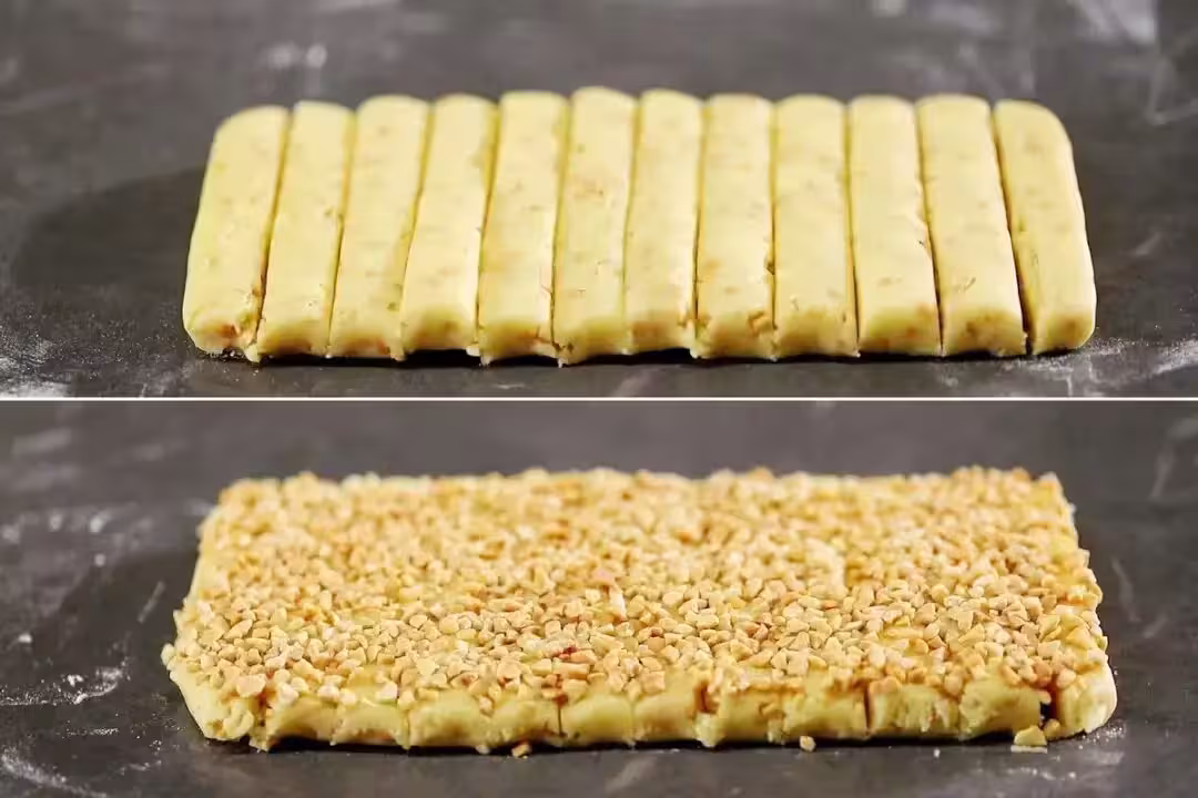 最後,切成小條。這個配方一共可以切12條。