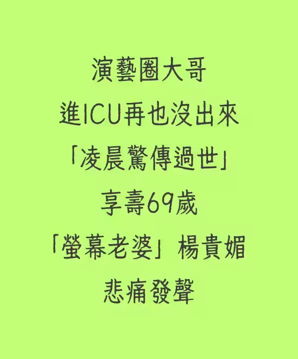 快訊/演藝圈大哥進ICU再也沒出來「凌晨驚傳過世」享壽69歲「螢幕老婆」楊貴媚悲痛發聲!