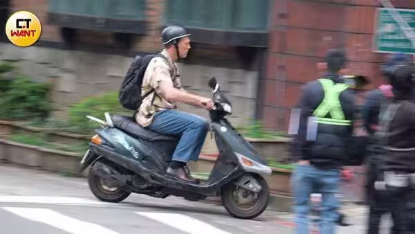 ▲戴著西瓜皮安全帽的山姆.沃辛頓騎著機車,畫面頗接地氣。(圖/本刊攝影組)