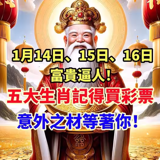 1月14日、15日、16日富貴逼人!五大生肖記得買彩票, 意外之財等著你!