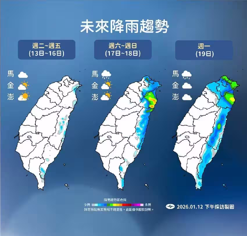 (圖/中央氣象署提供)未來一周降雨趨勢。