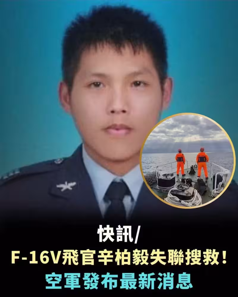 快訊/飛官辛柏毅失聯搜救! 空軍發布最新消息