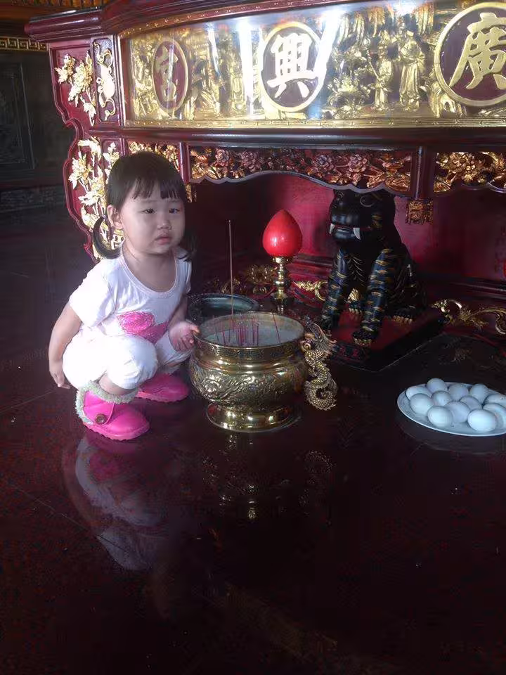 拜虎爺突然蹲下!!3歲女兒「用手扶著金爐」五官全皺成團,媽媽看清後「秒腿軟下跪」:不知者無罪!