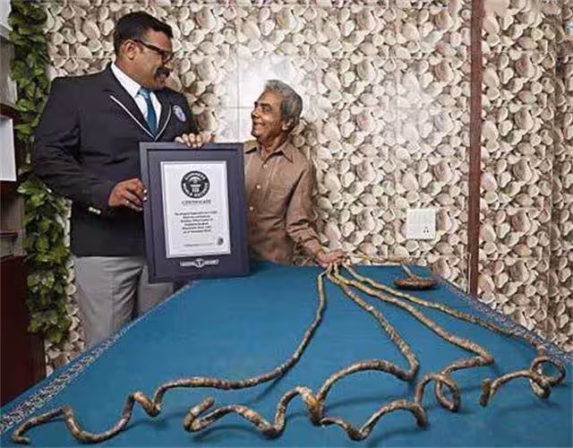 這一次,他成功捍衛了他的世界上最長指甲的世界紀錄。這一次測量,奇拉爾他的指甲總長度已經近十米了,比一輛長度公交汽車還長。
