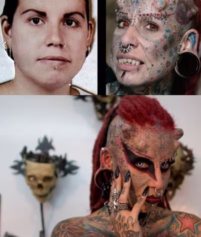 Maria Jose Cristerna來自墨西哥,身上共有49處身體改造,包括大面積的紋身,還有額頭、胸部和手臂的皮下植入體,以及眉毛、嘴唇、鼻子、舌頭、耳垂、肚臍和乳頭上的多個穿環。然而,她似乎沒打算停下來。