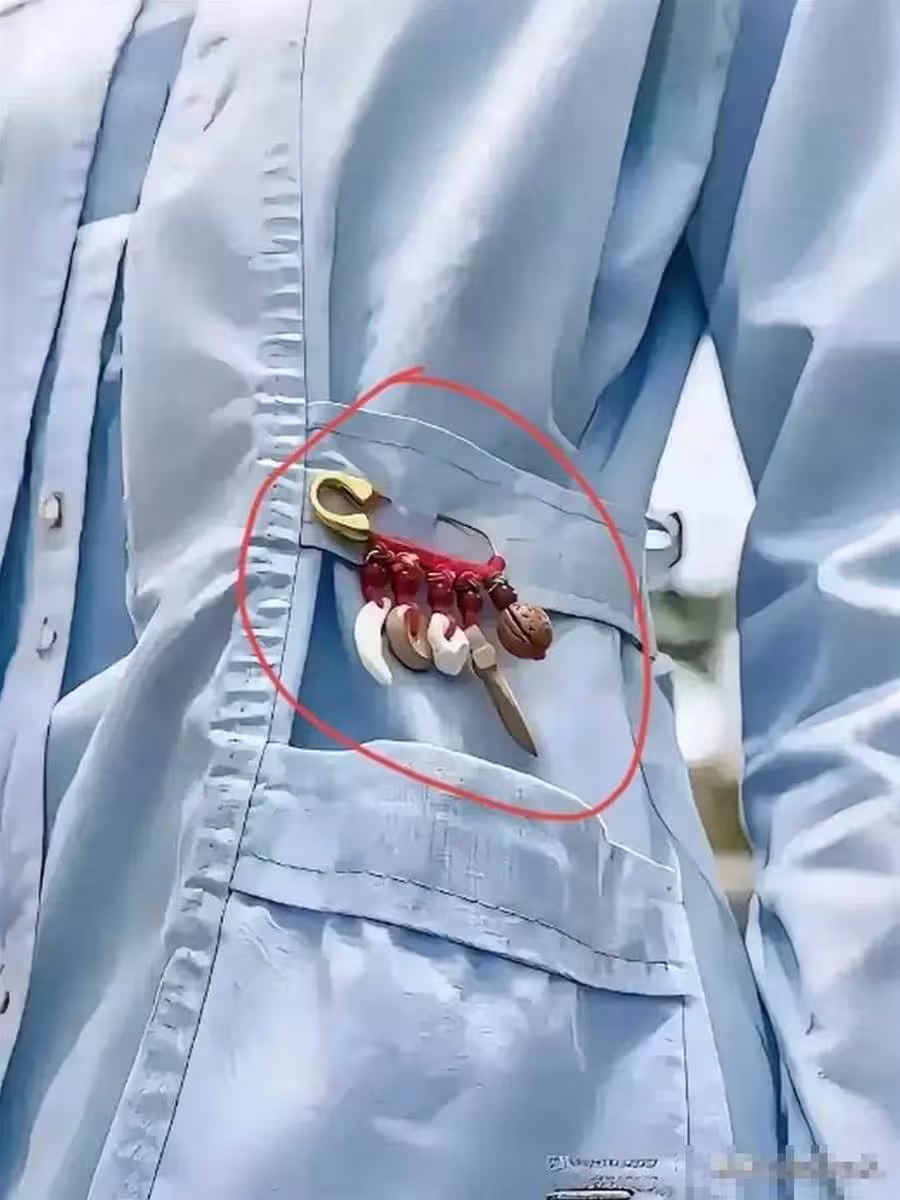 那是一個頗為特別的掛飾。黑色的細繩下面,墜著幾樣小小的物件:一個看起來像是桃木雕成的小斧頭,一個微縮的算盤,一枚古銅錢,還有幾顆顏色各異的珠子和小鈴鐺,看起來是金屬或陶瓷材質。整體搭配得並不算精美,甚至有些古樸,與醫院裡那些閃亮的醫療器械和潔白的環境形成了微妙的對比。