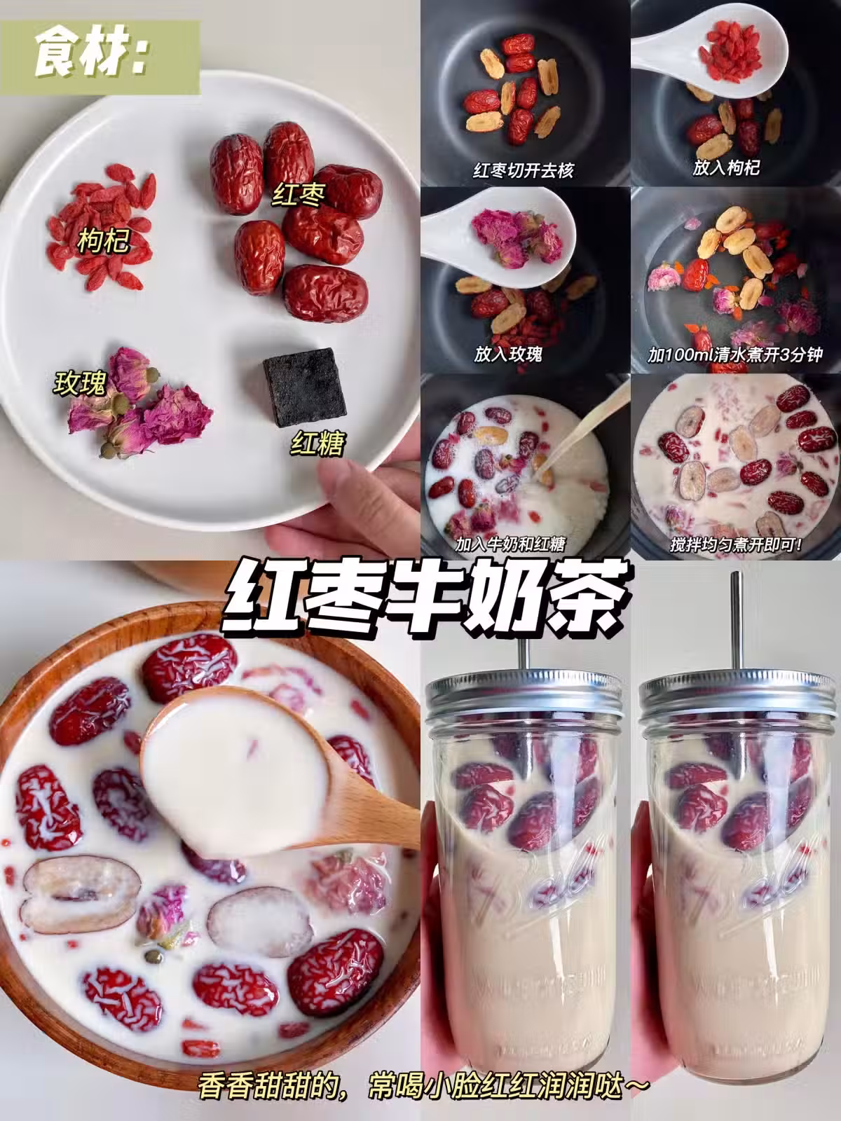 食料:枸杞,紅棗,玫瑰,紅糖,牛奶