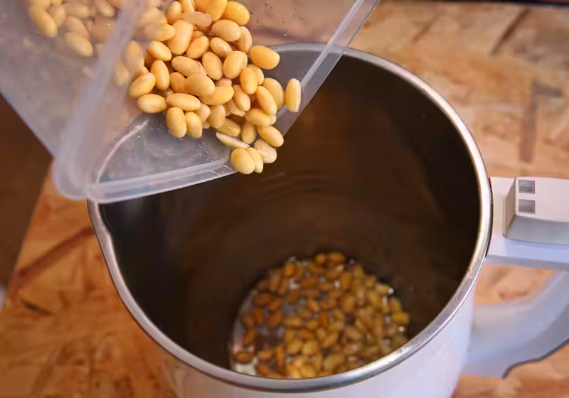 各廠牌豆漿機建議的黃豆與水的比例不同,因會影響後續豆漿的濃稠度,所以需適度調整。