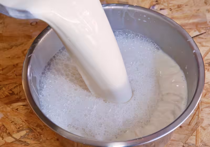 剩下的豆漿加熱至攝氏70~75度後,全部倒入置有粉漿的鍋內,靜置5∼10分鐘,