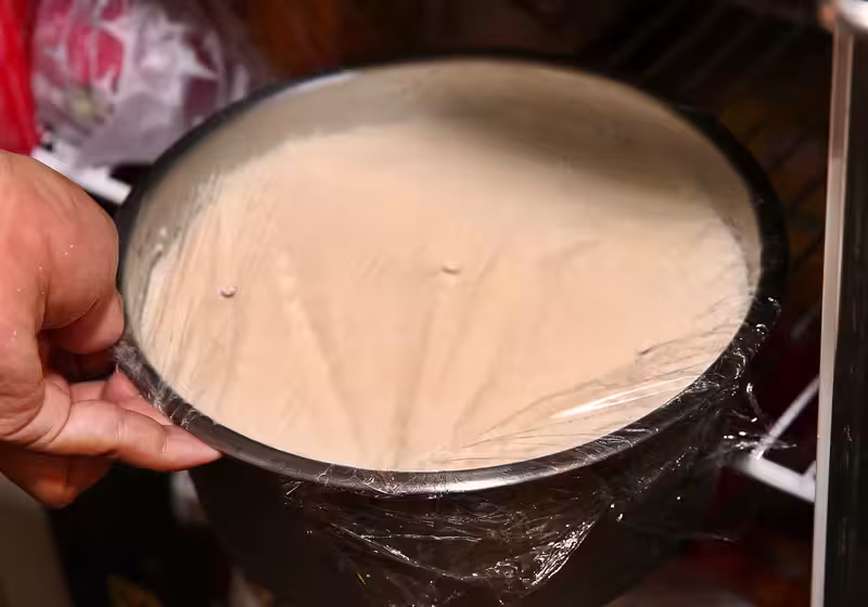 鍋頂覆蓋保鮮膜,整鍋豆花放入冰箱冷藏,3小時之後即為冰豆花,保鮮期約3天。