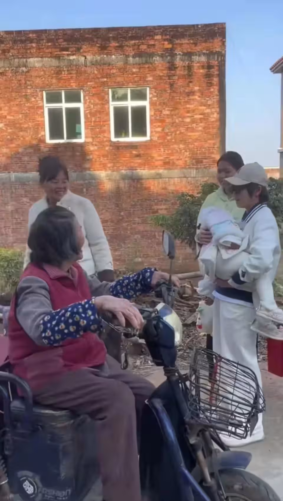 全紅嬋哥哥也在,他手裡提著幾個禮盒,走在外婆身後。這畫面真是太溫馨,村子裡也有不少人圍觀,想要看看奧運冠軍的真實模樣。