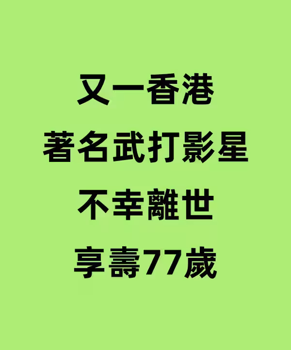 又一香港著名武打影星不幸離世,享壽77歲
