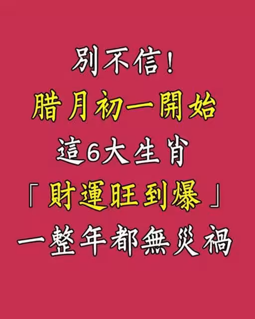 農曆十二月初一開始,這6大生肖「財運旺到爆」一整年都無災禍