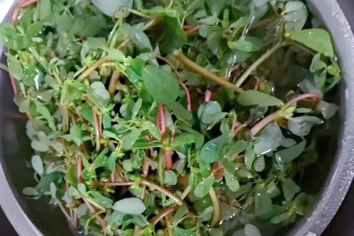 2、把大蒜剝去外皮清洗乾淨後加少許鹽給它搗成蒜泥,在蒜泥中加入適量的雞精、少許香油和一點點水攪拌均勻後倒在馬齒筧上,加入一點芝麻醬攪拌均勻就可以裝盤開吃了。
