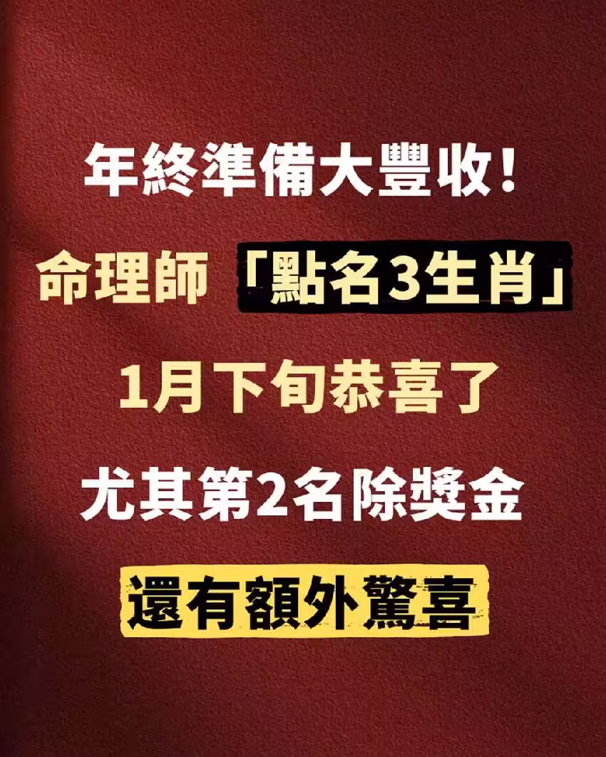 🎉 年終準備大豐收!命理師點名「3 生肖」1 月下旬恭喜了——尤其第 2 名,不只獎金,還有額外驚喜! 🎉