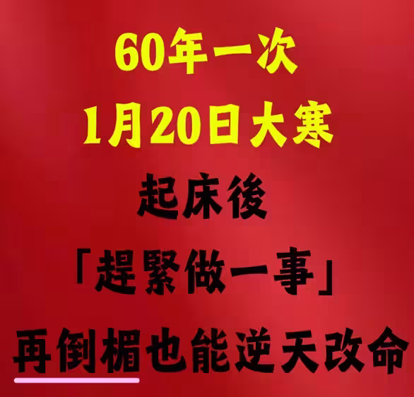 60年一次,就在1月20日「大寒」 起床後「趕緊做一事」再倒楣也能逆天改命