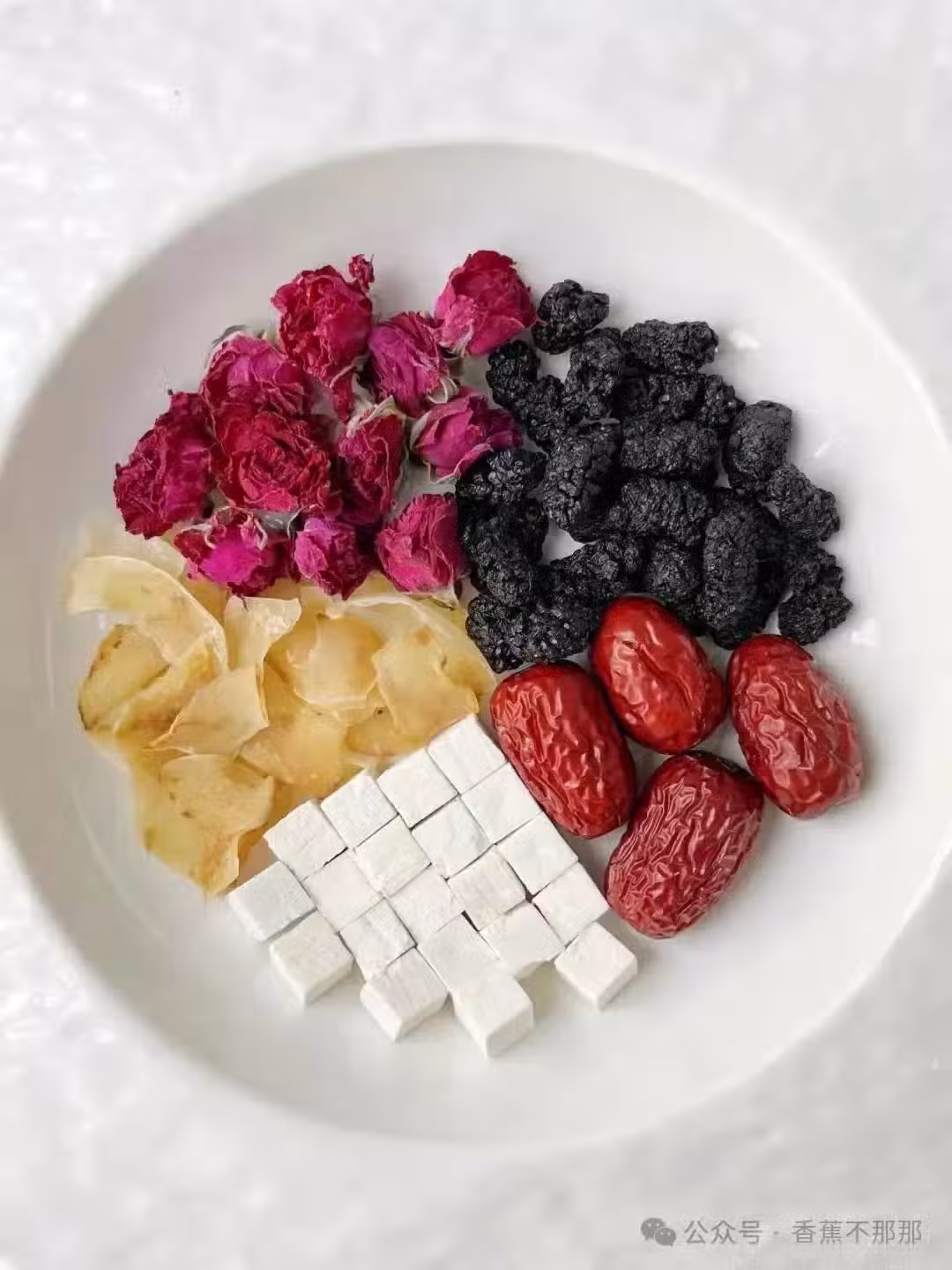百合6g、紅棗3顆、茯苓6g、玫瑰6g、桑葚3g。