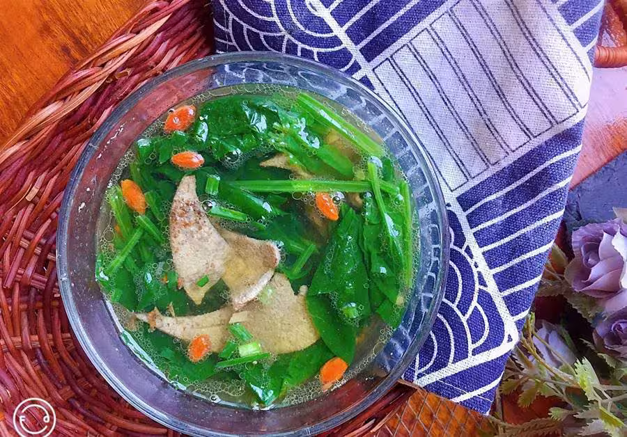 豬肝半斤、菠菜3兩、枸杞適量、生薑一大塊