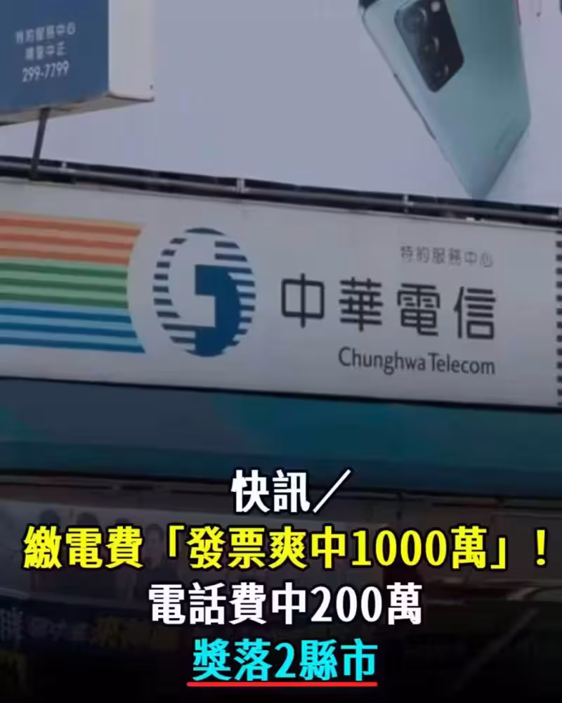 快訊 / 繳電費「發票爽中1000萬」電話費中200萬,獎落2縣市!