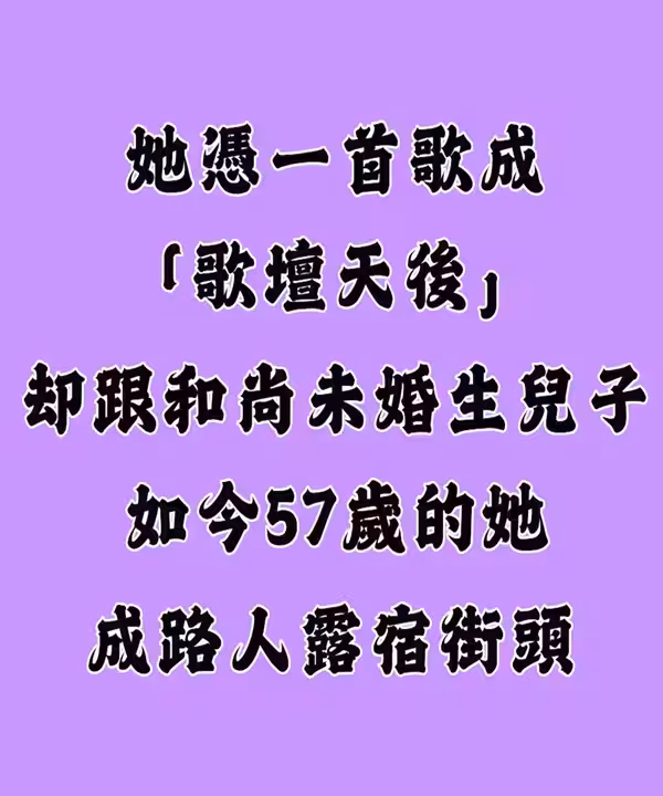 她憑一首歌成「歌壇天后」卻跟和尚未婚生兒子,如今57歲成路人露宿街頭