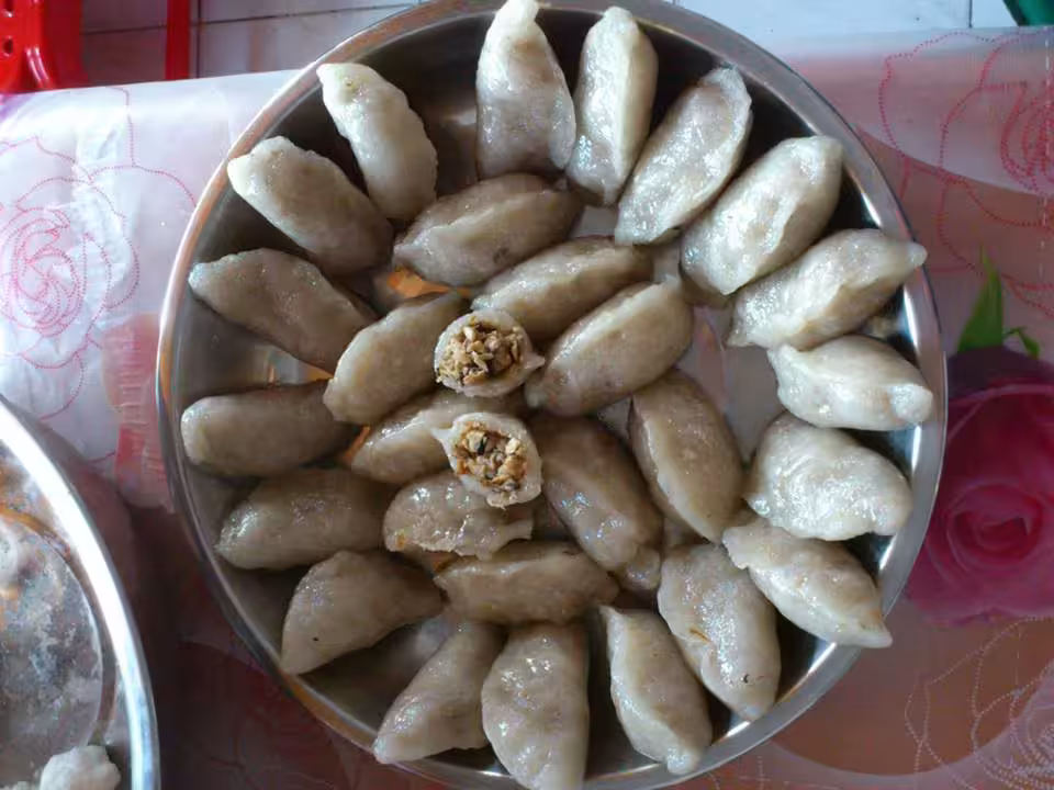 今天跟大家分享我的家鄉美食筍粄製作過程。我們的客家粄涵蓋的種類很多,有用大米做的,也有用糯米粉做的,還有用木薯粉做,經過不同的加工手法製作出來,品種有200款之多。地道的客家粄,首先選料要精,如優質米細細研磨成漿才能蒸出透明爽滑的米反皮,餡料用時鮮蔬果;然後製作也要精,做米粄用的米漿一定要細磨,一點也不能含糊。