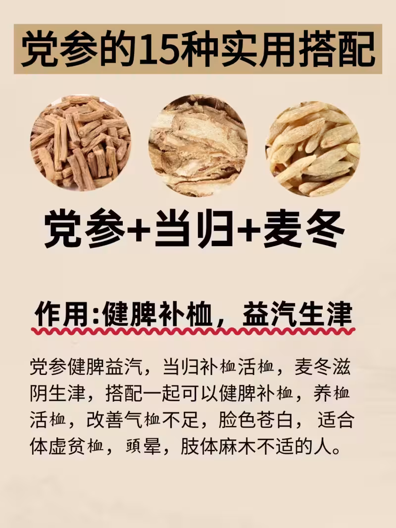 ❷8克黨參+3克當歸+8克麥冬