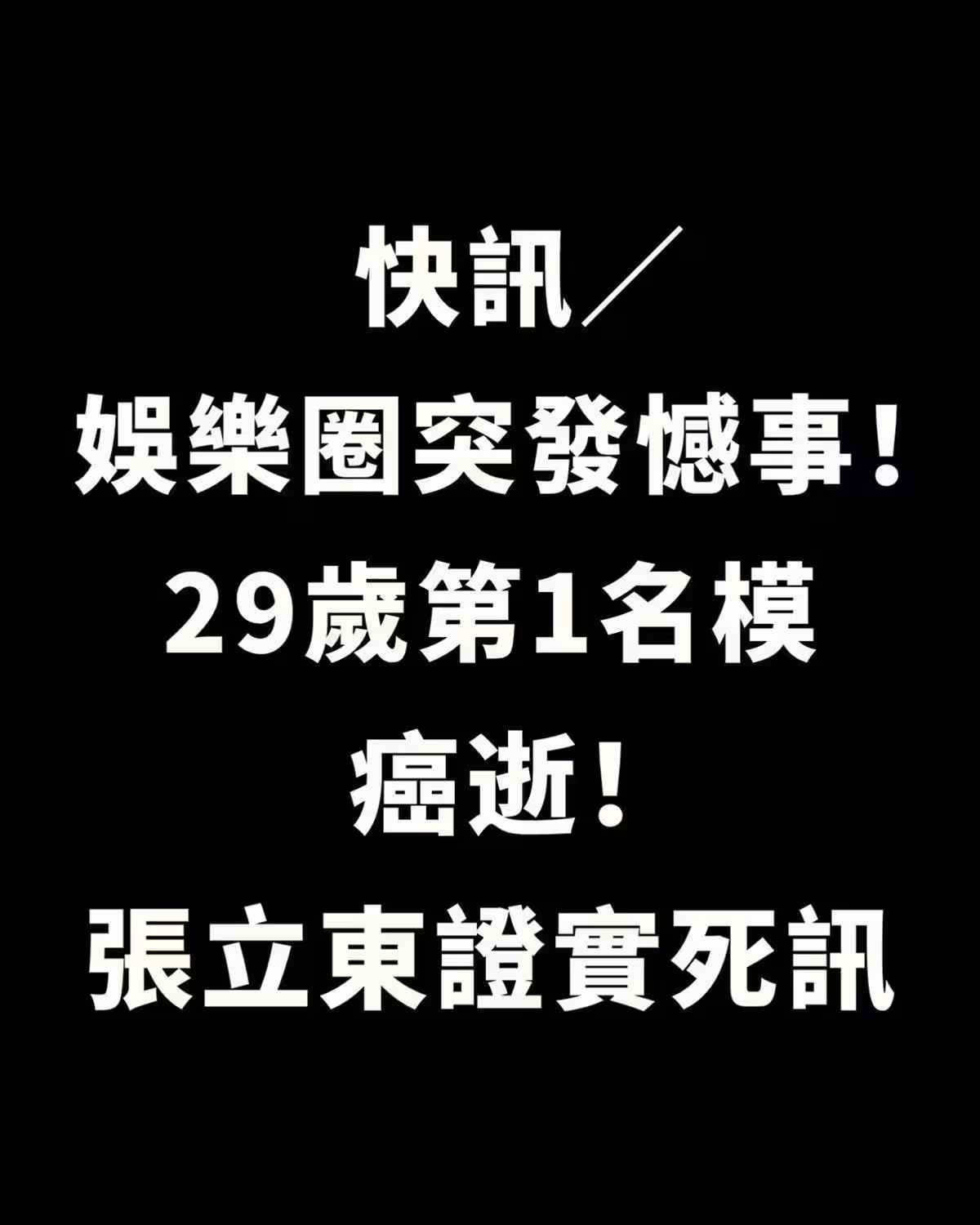 快訊 / 娛樂圈突發憾事!!! 29歲第1名模癌逝, 張立東證實死訊