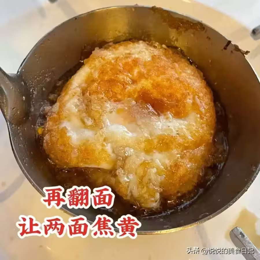 打入一個土雞蛋,稍微晃動一下,跟我們平時煎荷包蛋一樣,煎到兩面金黃焦香酥脆就可以啦。