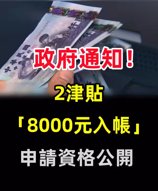快訊/政府通知!2津貼「8000元入帳」 申請資格公開