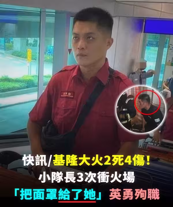 快訊 / 基隆大火兩死四傷!小隊長三次沖火場「把面罩給了她」英勇殉職