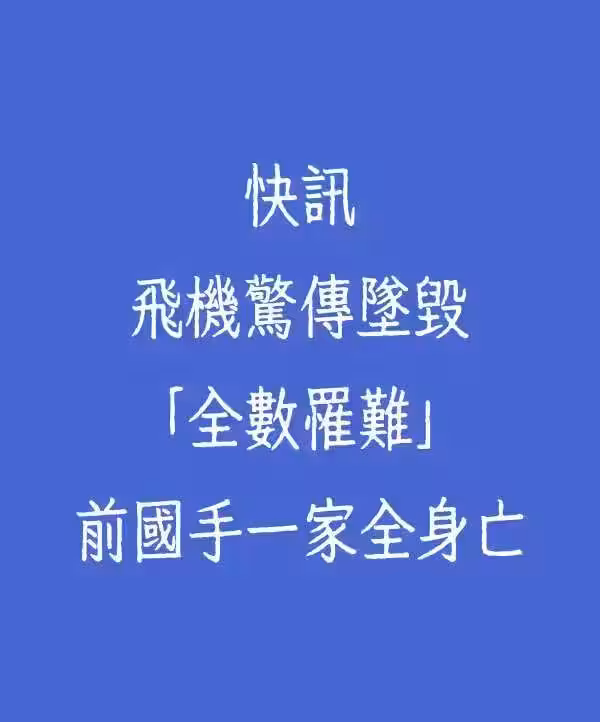 快訊/飛機驚傳墜毀「全數罹難」 前國手一家全身亡!