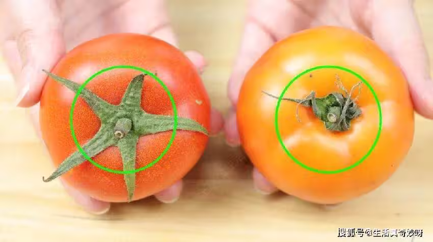 三、看果柄想要知道西紅柿有沒有打激素,觀察西紅柿的果柄也是非常重要的一步。 通常而言,果柄顏色翠綠,果蒂枝葉舒展,並且果柄微微往裡凹陷的西紅柿,是自然成熟,品質優良的西紅柿。